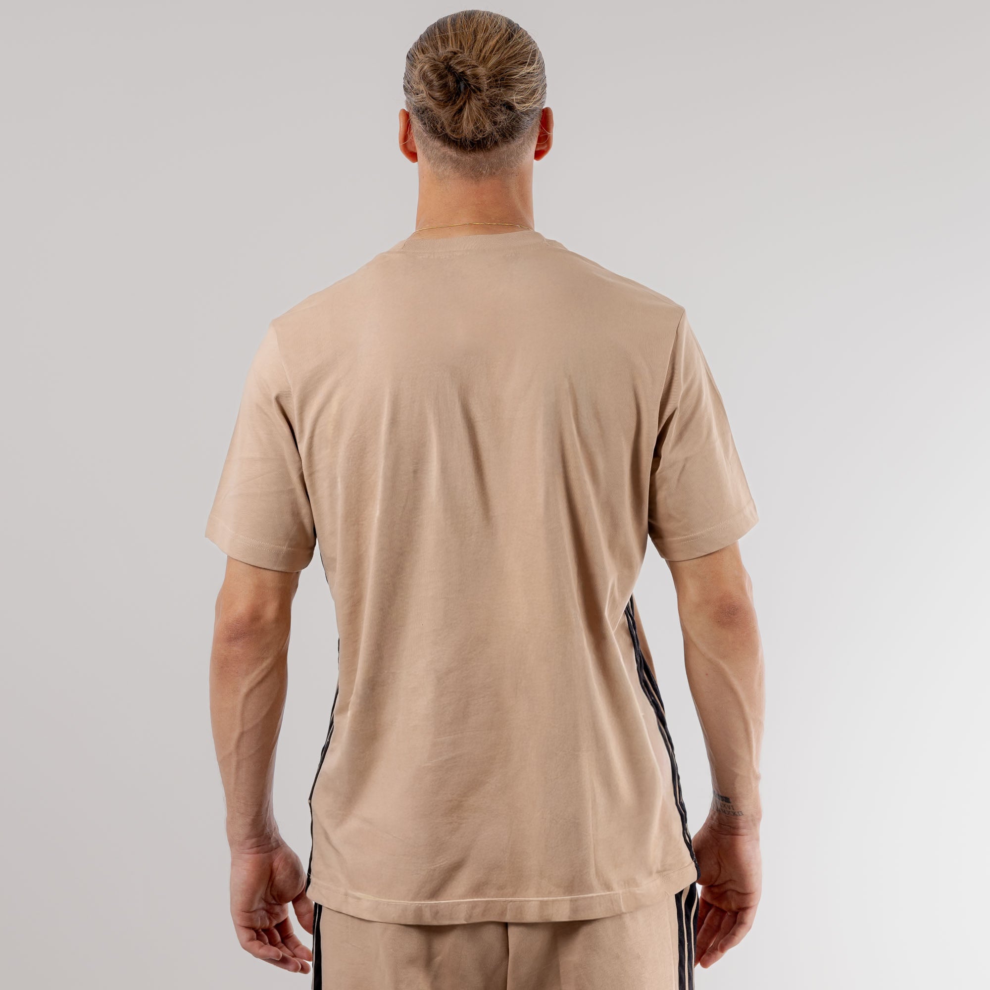 La camiseta imprescindible para adultos de la Colección Oficial de Moda Casual del Sevilla Fútbol Club para la temporada 25/26, en beige con el logo del sponsor técnico y el nombre de tu equipo serigrafiados en color negro en el pecho. Perfecta para cualquier ocasión.