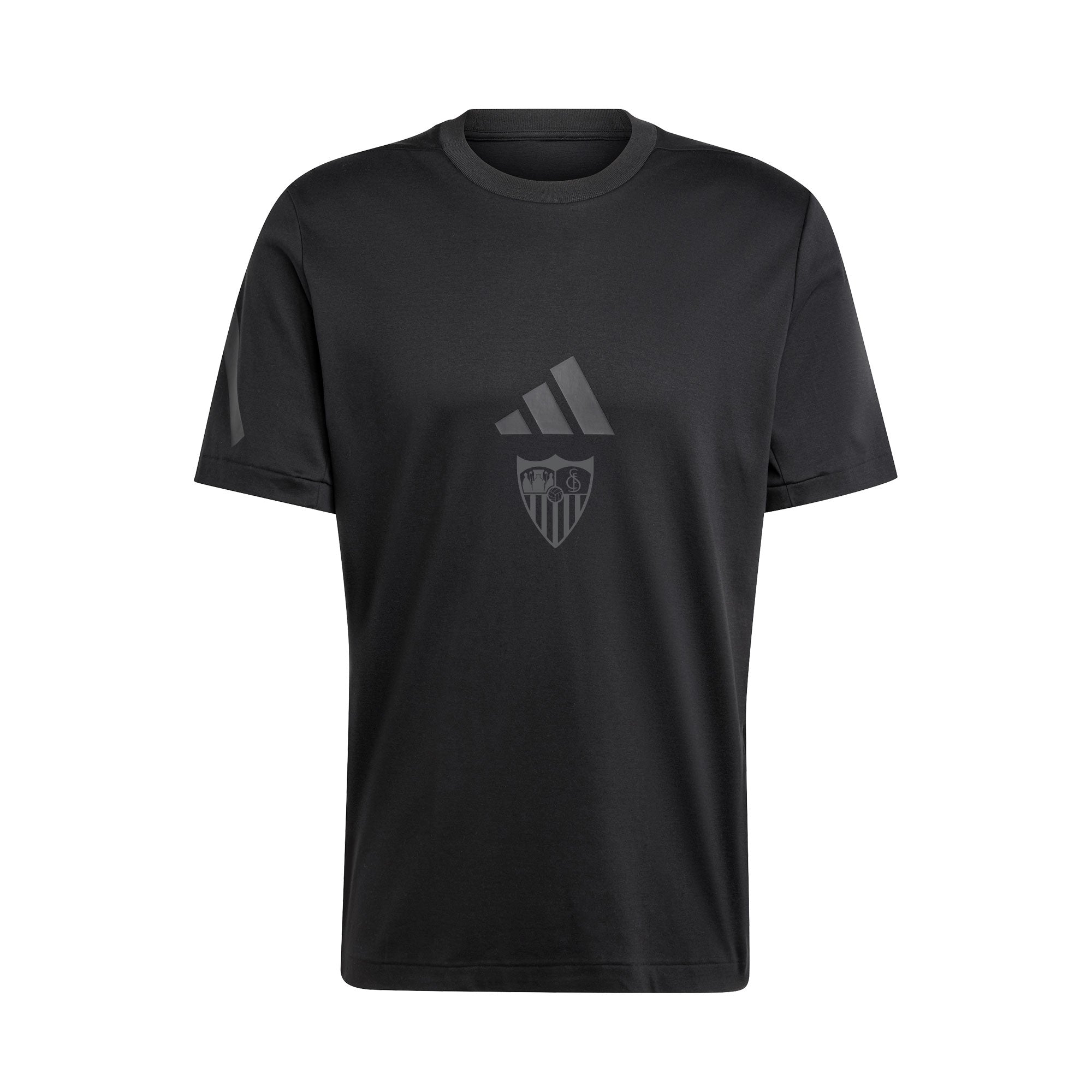 La camiseta imprescindible para adultos de la Colección Oficial de Moda Casual del Sevilla Fútbol Club para la temporada 25/26, en negro con el logo del sponsor técnico y el nombre de tu equipo serigrafiados en color negro en el pecho. Perfecta para cualquier ocasión.