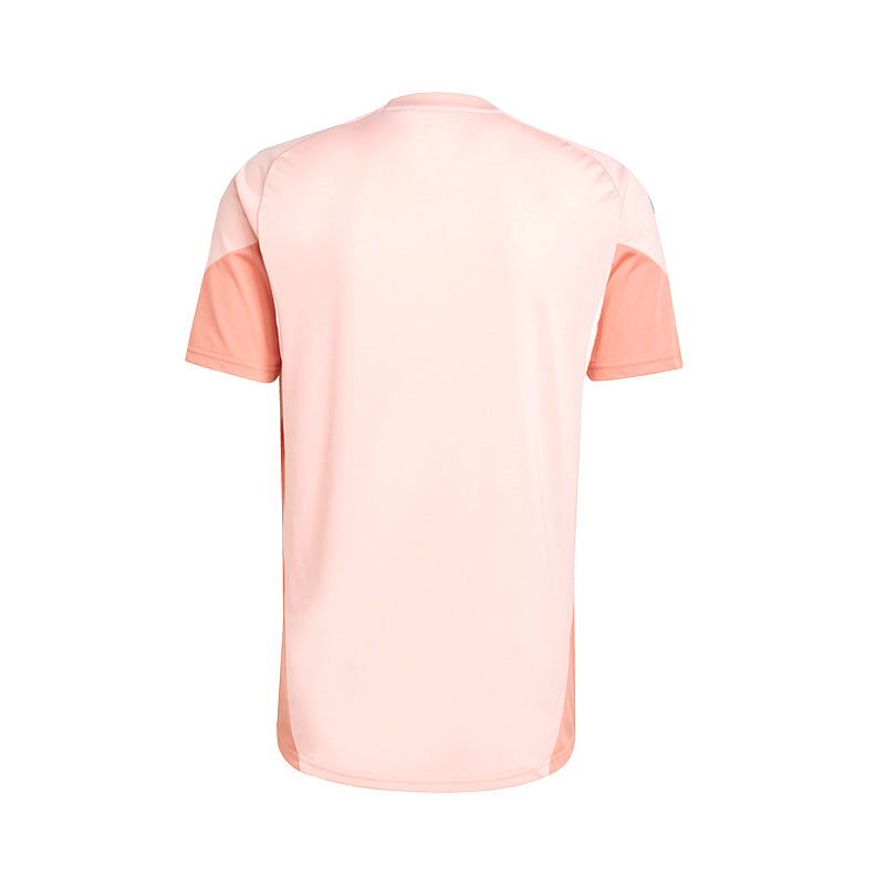 Camiseta color salmón de entrenamiento para niños con detalles azul en los hombros y el escudo del Sevilla FC en azul en el pecho, perteneciente a la Colección Oficial de Entrenamiento del Sevilla Fútbol Club para la temporada 25/26.