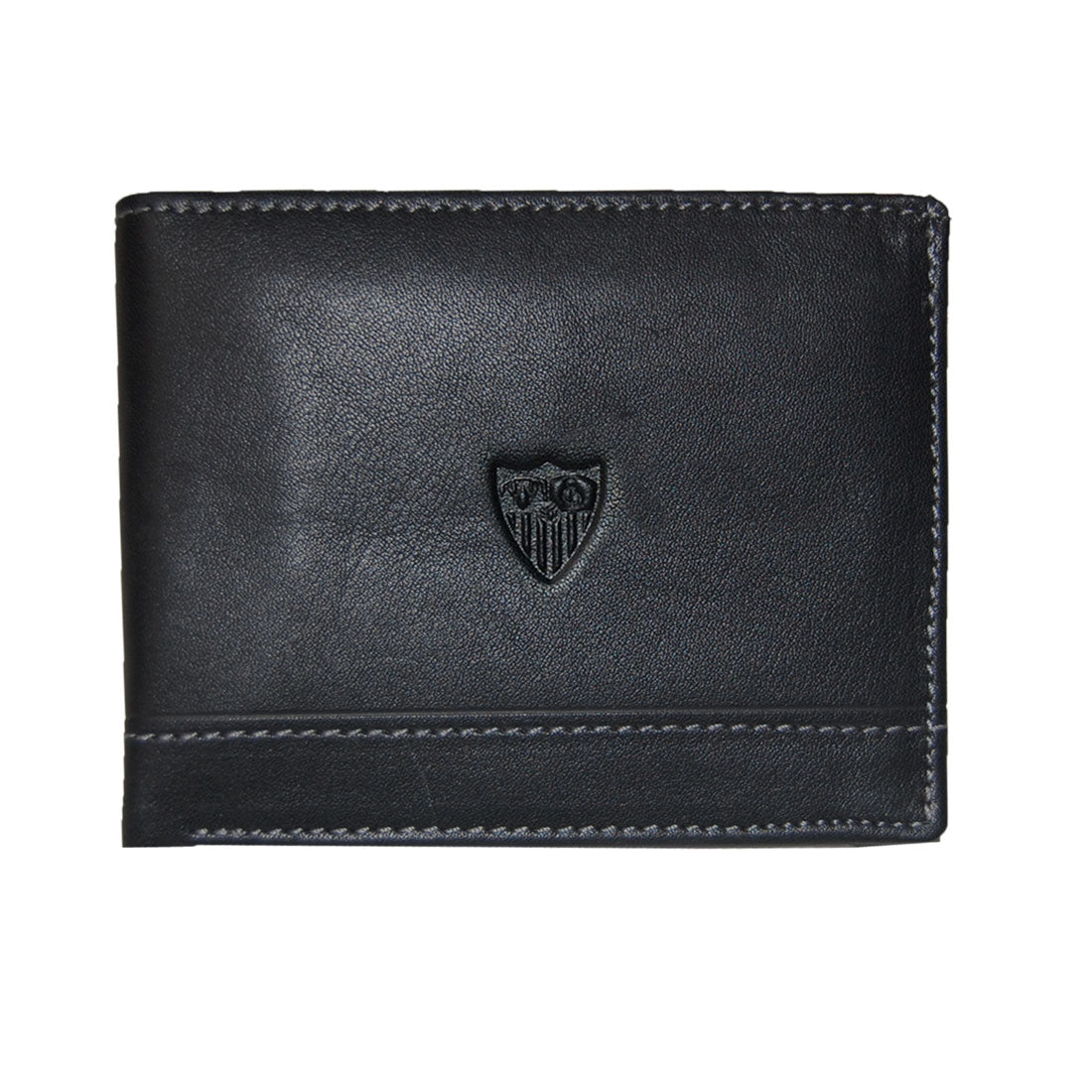 Cartera de estilo americano del Sevilla FC de piel en color negro.