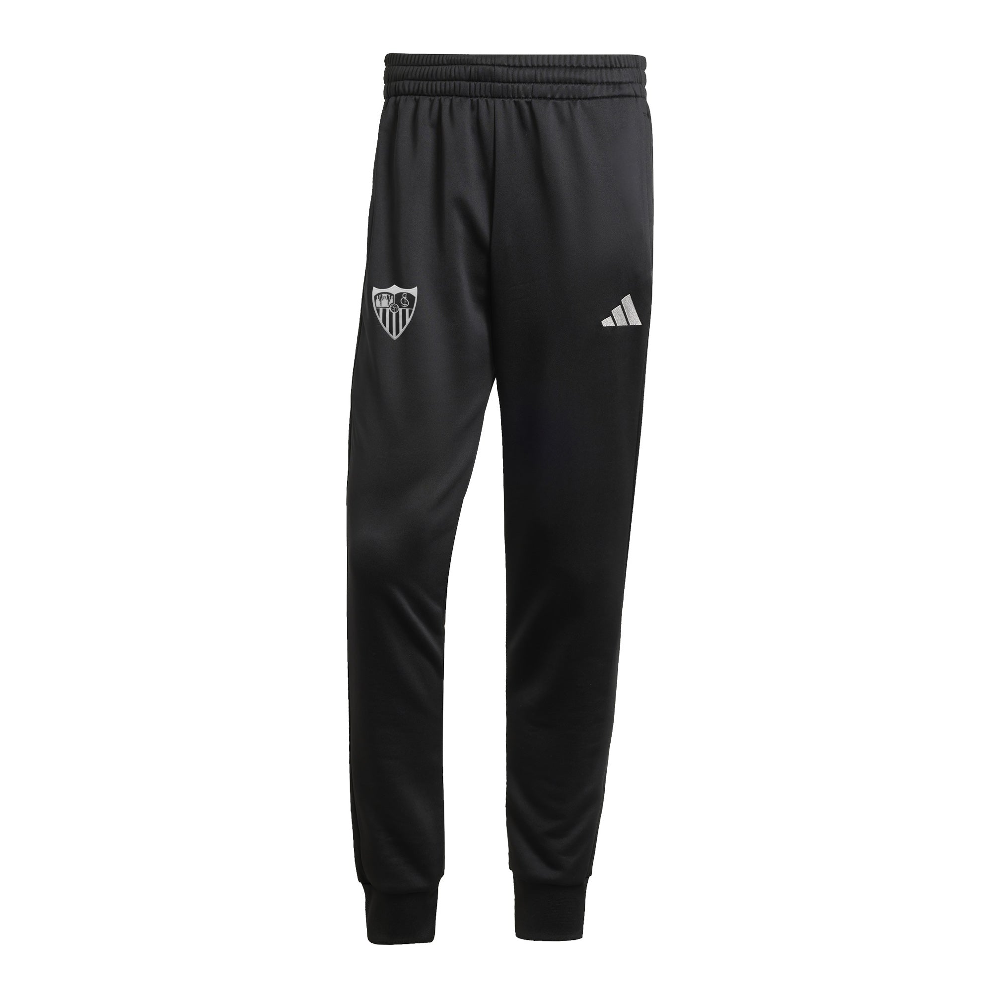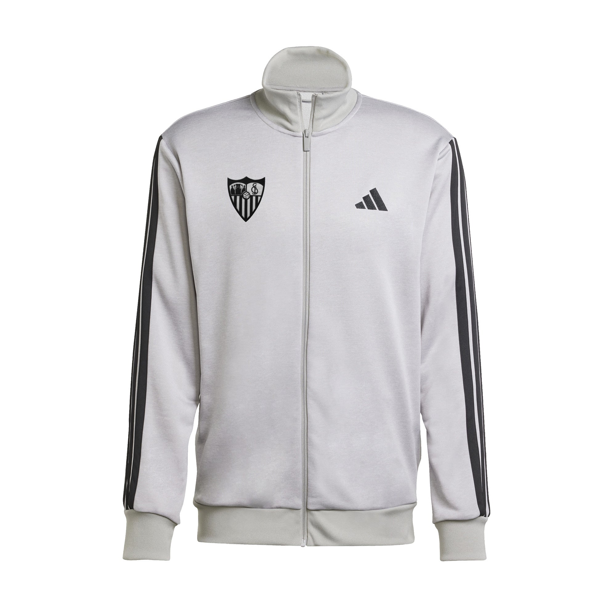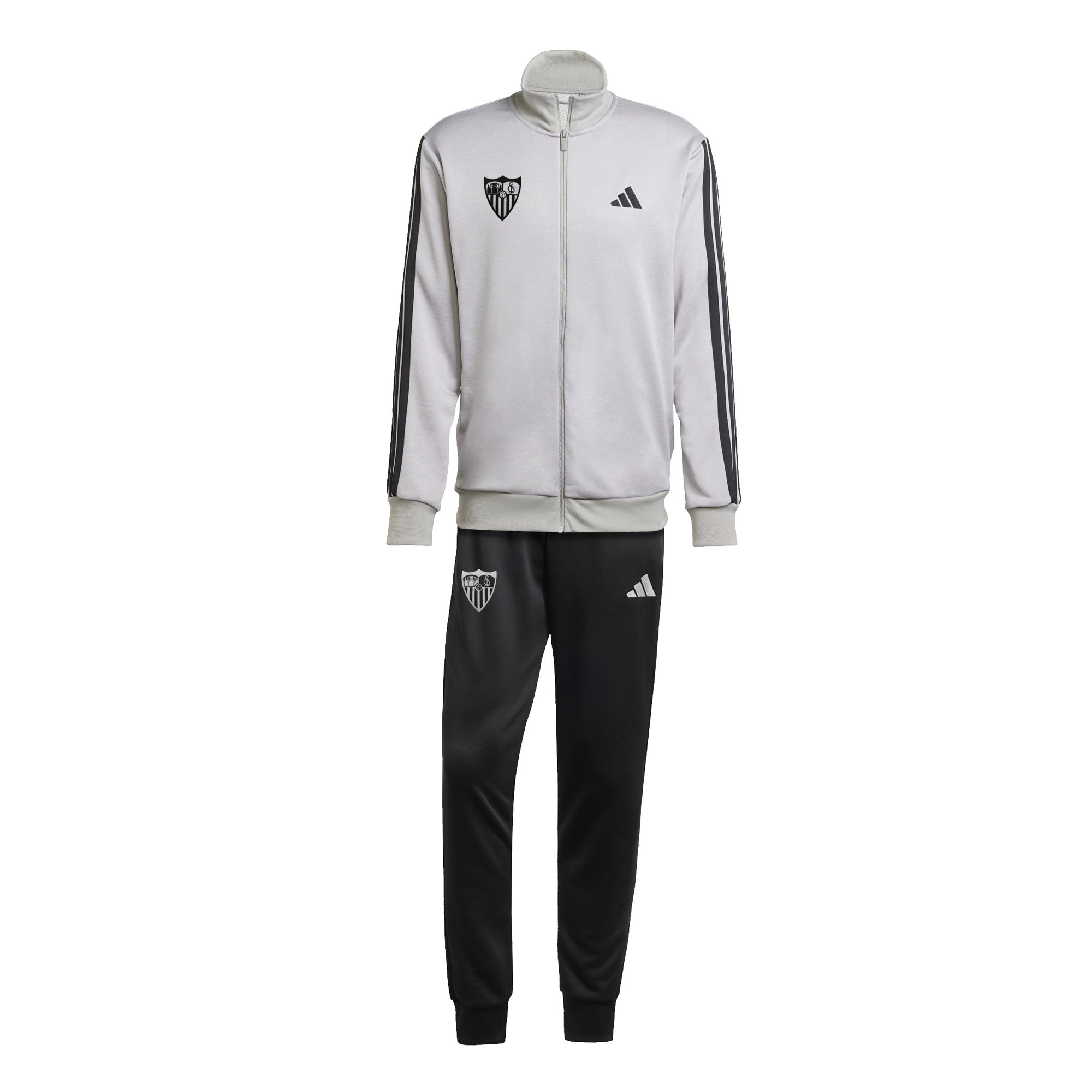 Este chándal de entrenamiento para adultos, tiene un diseño especial con detalles en los hombros y con el escudo del Sevilla FC en color negro serigrafiado sobre el pecho.