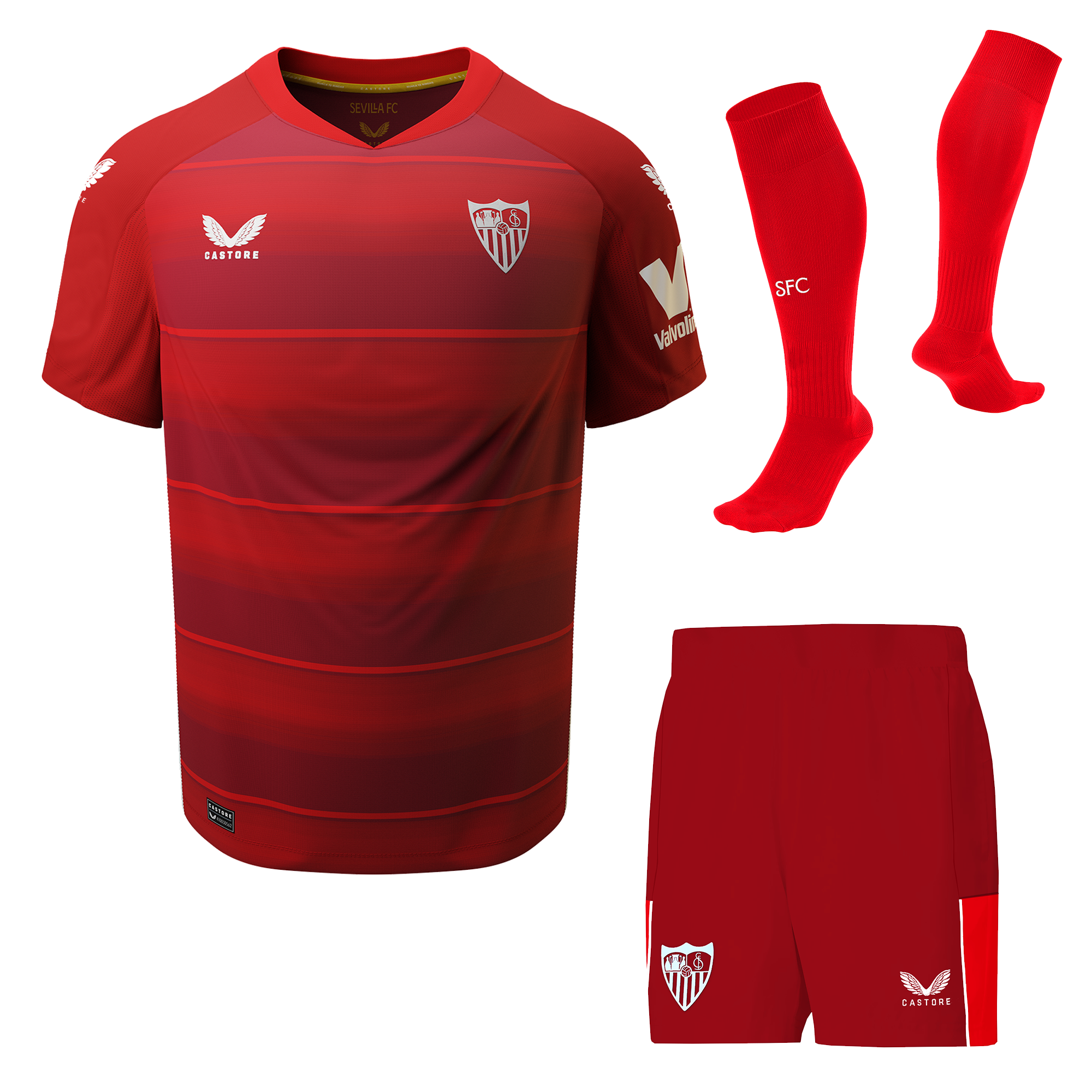 Conjunto para bebé de la 2ª Equipación Oficial del Sevilla FC de la temporada 22/23. IMPORTANTE: Las camisetas con cualquier tipo de personalización, con nombre de jugador no tendrán derecho a ningún tipo de cambio o devolución. La foto puede variar ligeramente con respecto al producto final.