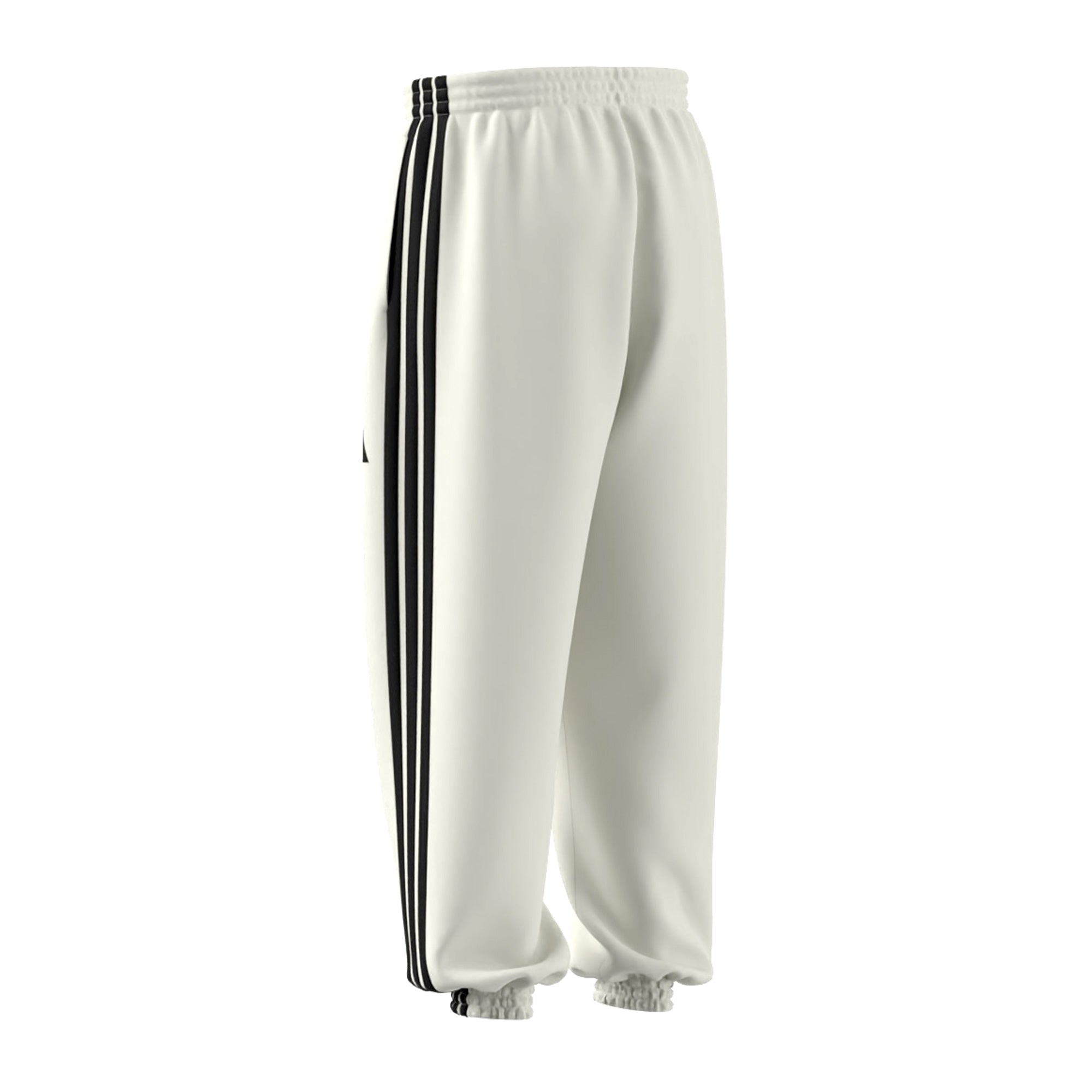 Cintura elástica con cordón para ajuste personalizado. Puños elásticos y bolsillos laterales. Las clásicas tres bandas de Adidas recorren los laterales del pantalón.