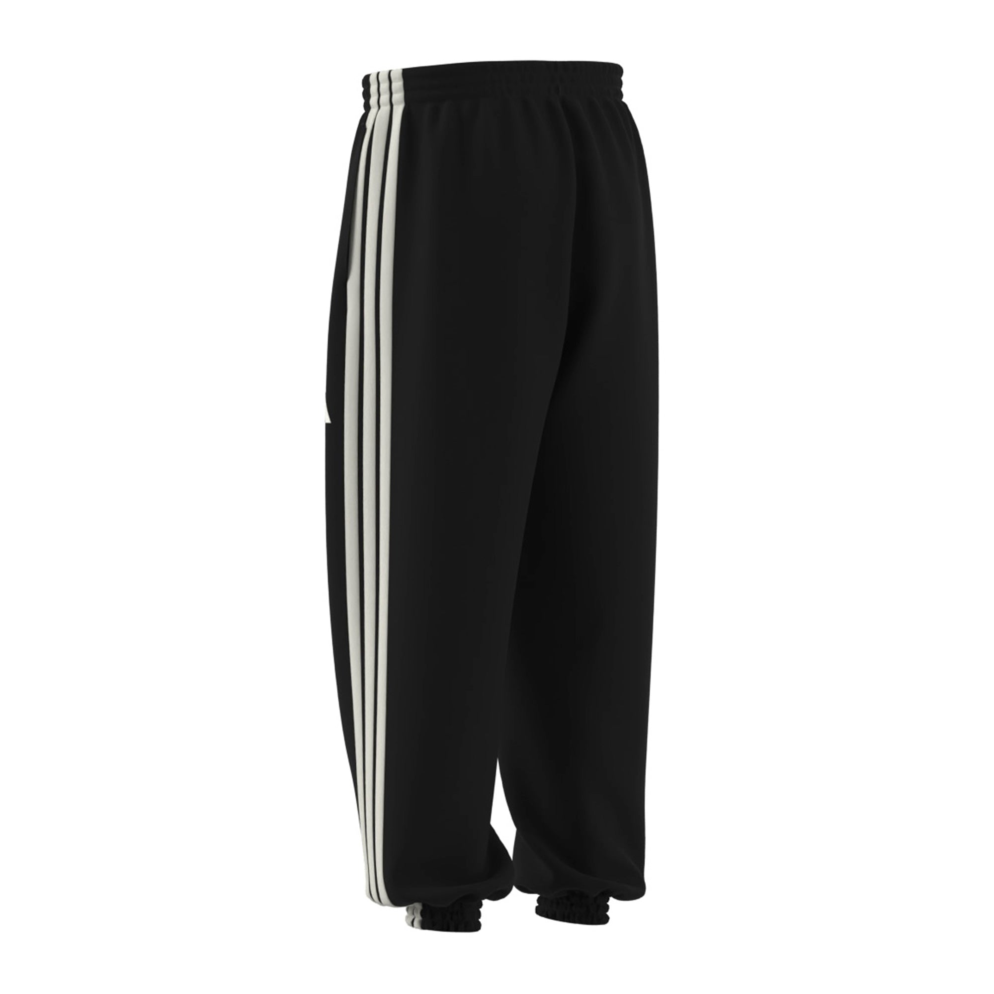 Cintura elástica con cordón para ajuste personalizado. Puños elásticos y bolsillos laterales. Las clásicas tres bandas de Adidas recorren los laterales del pantalón.
