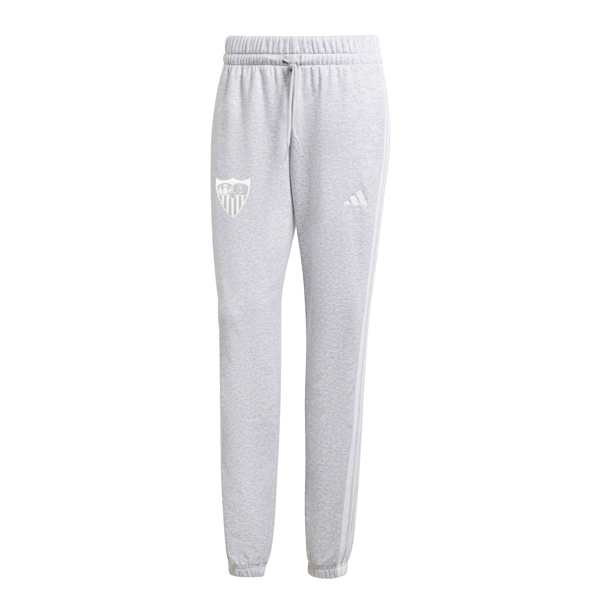 Pantalón gris para mujer, definitiva de la Colección Oficial del Sevilla Fútbol Club para la temporada 25/26. Lúcelo en ocasiones casual con su elegante diseño con detalles laterales, sponsor técnico y escudo serigrafiados en blanco.