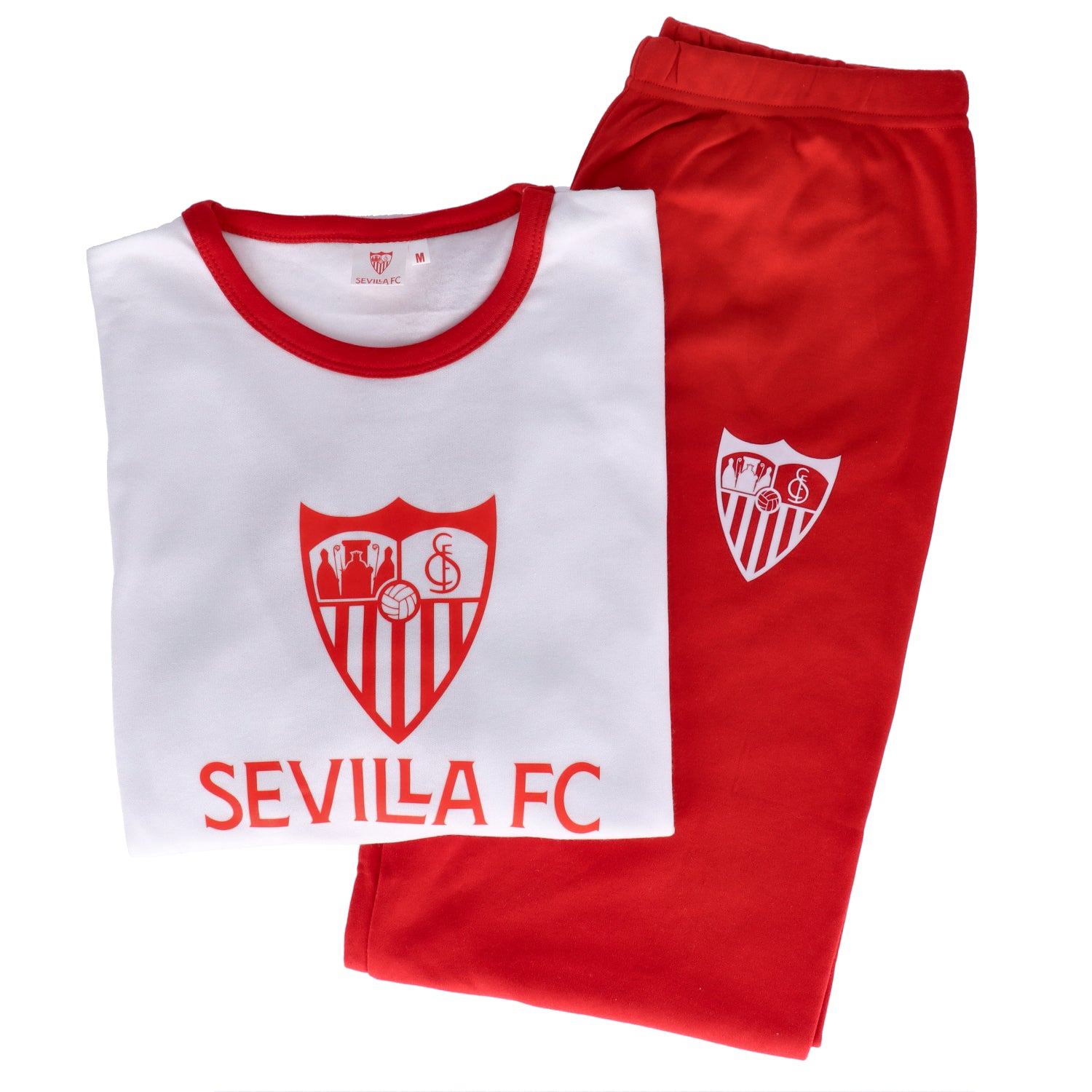 Disfruta del máximo confort y demuestra tu pasión por el Sevilla FC con este pijama de invierno en rojo y blanco. Con el escudo y el nombre del club en el pecho, te mantendrás abrigado y lucirás tu orgullo sevillista incluso en las noches más frías.