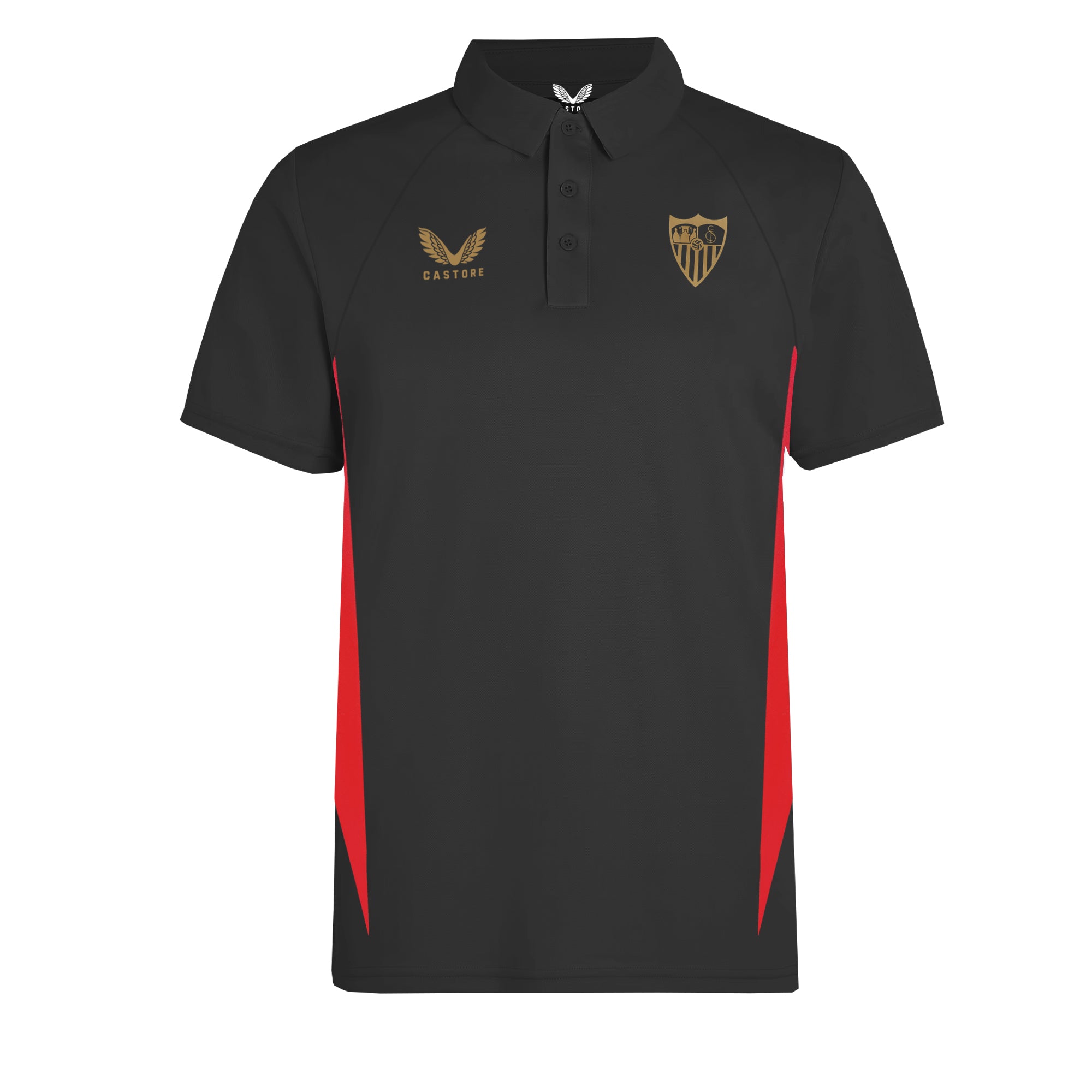 Este polo casual de paseo en negro con detalles laterales en rojo, para niños, con escudo del Club y logo del sponsor técnico en dorado es perfecto para lucir tu sevillismo en ocasiones tanto formales como informales. Perteneciente a la Colección Oficial de Moda Casual del Sevilla FC 24/25, es una prenda imprescindible en el armario de cualquier verdadero aficionado.