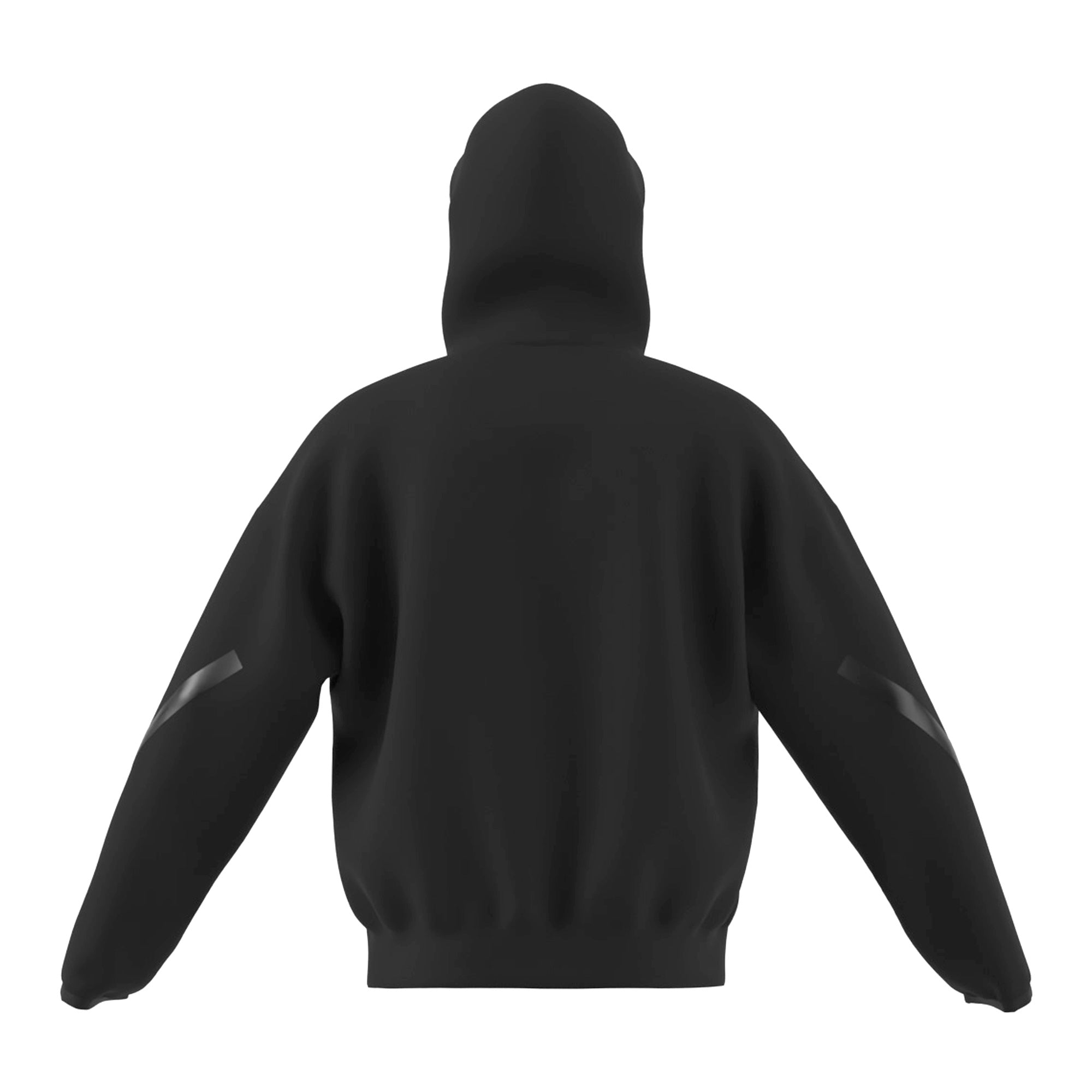 La sudadera negra para adultos, con capucha y bolsillos de canguro, tejido de doble capa, triple grosor. Talla amplia oversize . Lúcela en ocasiones casual con su elegante diseño con detalles laterales, sponsor técnico y escudo serigrafiados en negro en el pecho.