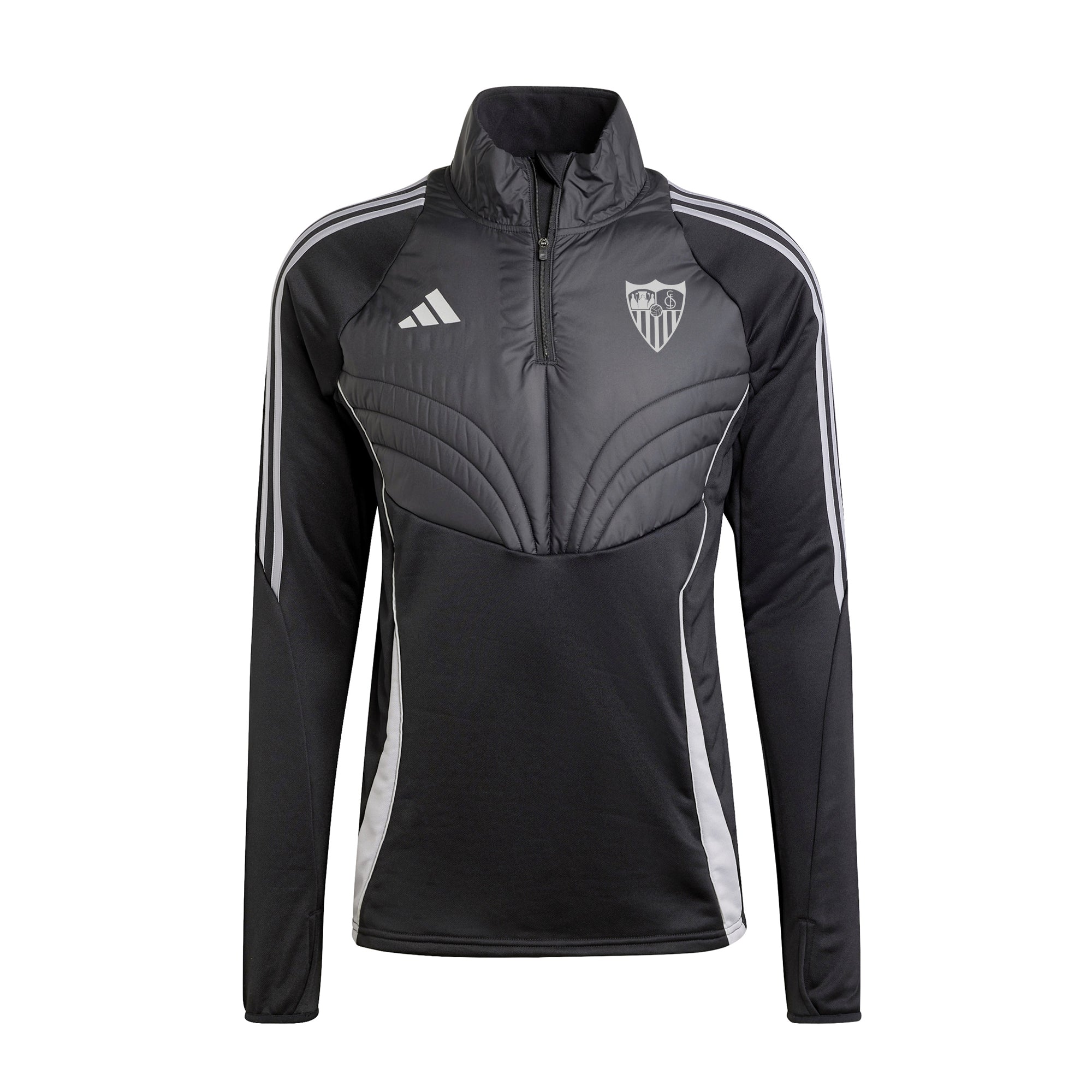 Esta sudadera de entrenamiento negra pertenece a la colección especial del Sevilla FC para la temporada 25/26. Esta sudadera para adultos está diseñada en negro con detalles blancos en laterales y hombros y luce el escudo del Club serigrafiado en blanco.