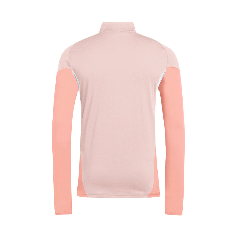 Perteneciente a la Colección Oficial de Entrenamiento del Sevilla Fútbol Club para la temporada 25/26, esta sudadera en color predominantemente salmón, detalles en mangas y logo de sponsor técnico y escudo del Club en azul sobre el pecho.