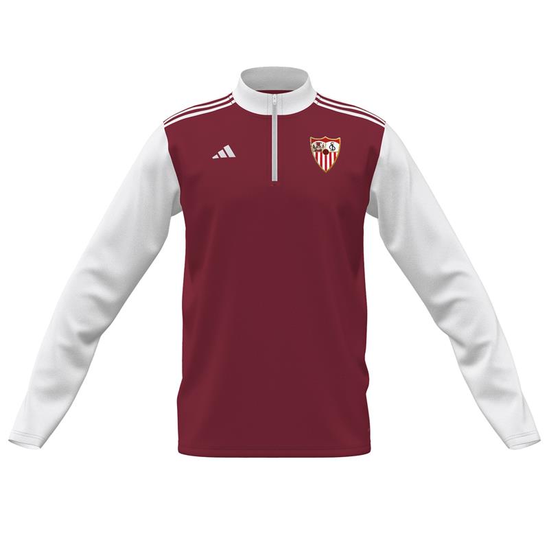 Con los colores de la pasión , esta sudadera prematch de entrenamiento para adultos, la misma que visten los jugadores del Sevilla Fútbol Club durante los prepartidos de la temporada 25/26, tiene un diseño especial con detalles en los hombros y mangas blancas y con el escudo del Sevilla FC en rojo y blanco serigrafiado sobre el pecho. ¡Imprescindible.